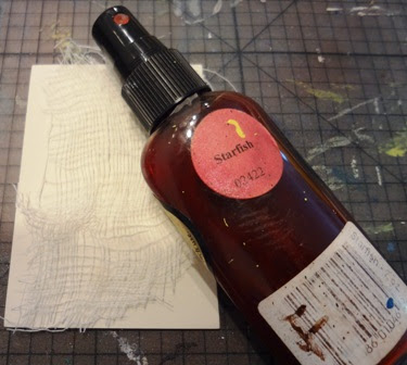 Você precisa da base do seu ATC, spray (tinta, mist, etc) e gaze. Vamos usar a gaze como máscara!